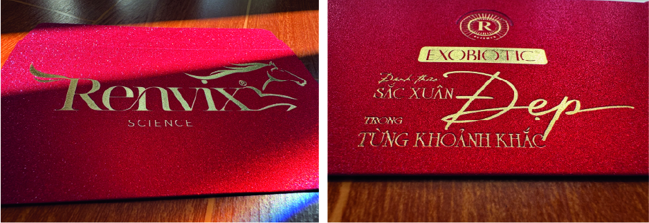 Khi kết hợp giấy kim tuyến + ép kim, bao lì xì đạt đến độ hoàn thiện cao cấp cả về thị giác lẫn xúc giác.