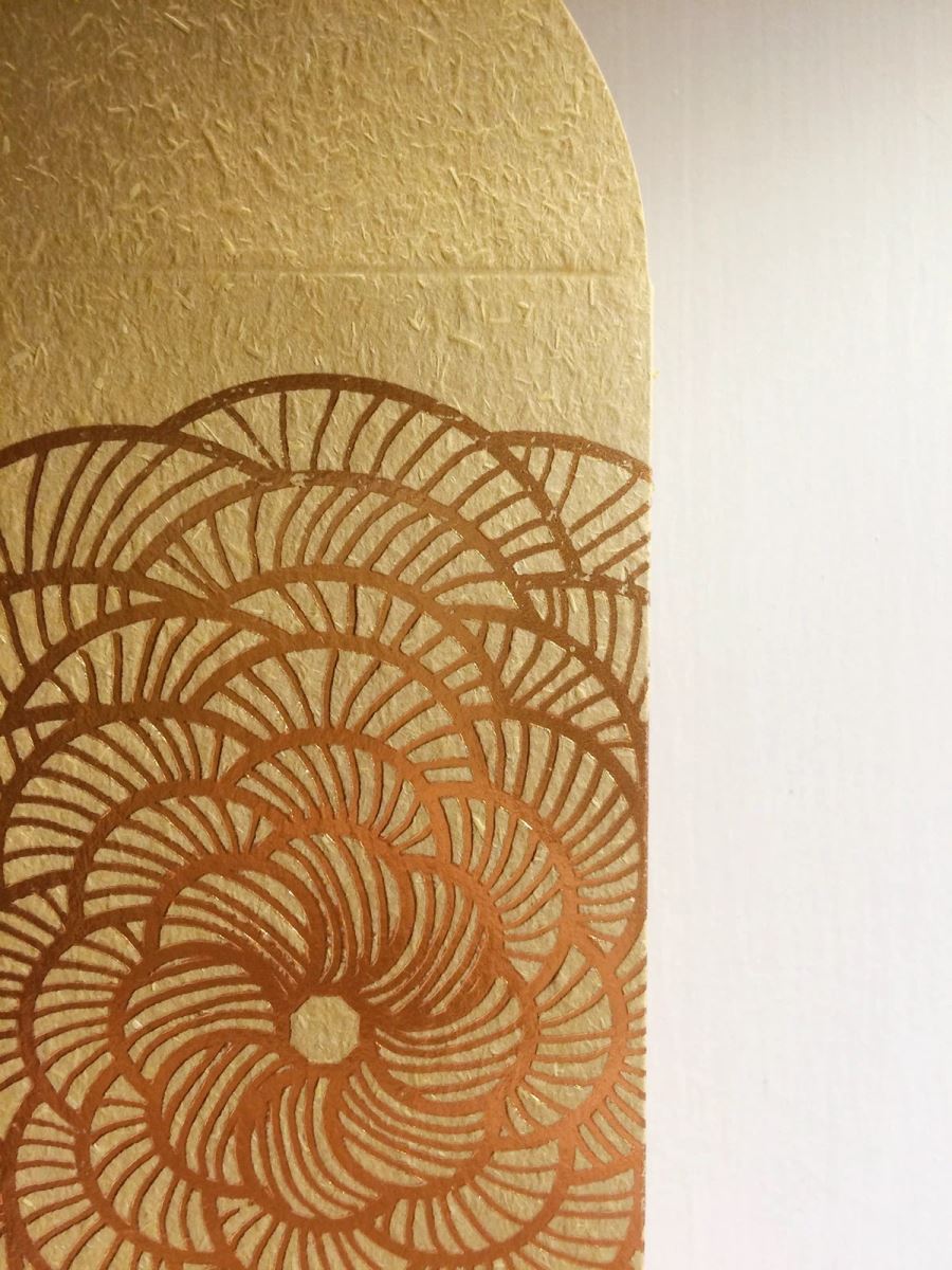 Kết hợp họa tiết hoa văn truyền thống, đường nét mảnh, in một màu và ép kim điểm nhấn giúp bao lì xì vừa cổ điển vừa hiện đại.